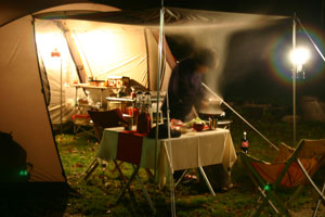 この夜は、空が晴れ渡っていて一面の星空。この後はランタン消して星空見物。