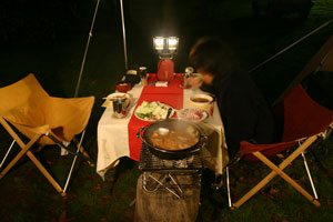 気温が4度と言っても風がないので、外で食事をしてもさほど寒さは感じない。まだまだ私たちには快適キャンプ気温圏内のようだ。あ〜、お腹いっぱい。
