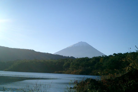 朝日がまぶしくて白く光った富士山はやっぱり冬のたたずまいだった。