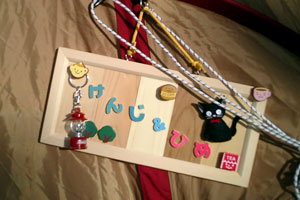 ちいにゃさん製kenji&姫の表札 & Haruppe家テーブルの上の手作り品(EZO妻さん製)