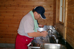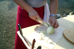 午後からは、moonさんのピザ教室が始まり。まずはミネストローネの食材を洗って切って・・・。kenjiもお手伝い。