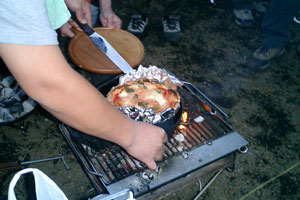 mo-chanパパさんと私は、ピザ焼き担当。mo-chanパパさん、ピザ独りで出来ますね。