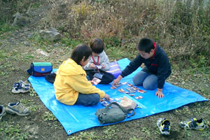 撤収作業のあとちょいと一服 子供たちはゲームに夢中だ。