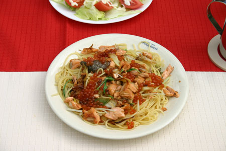 another_moonさんに教えていただいた、鮭といくらのアーリオ・オーリオ。この季節ならではのパスタはとてもおいしくて、二人ともあっという間にペロリ。kenji曰く、もっと食べたいと・・・。