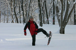さあ、お天気もいいし、だれも歩いていない雪原で遊んでみようかなとスノーシューを履いてそこいら中を走り回る姫。
