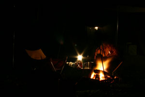 食事の後は、焚火でまったり。隣のライダーさんも小さいテントのお二人さんもとても静かに焚火を楽しんでいる。