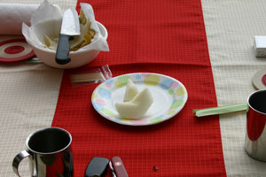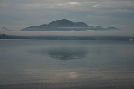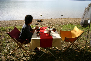 少し晴れ間が出てきたので湖畔にテーブルを出して朝食。気持ちいい〜。