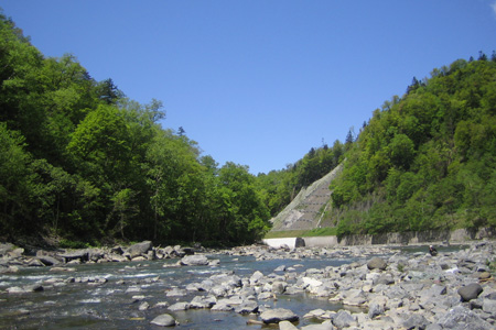 赤い釣り橋を渡って、キャンプ場を後にし、鵡川の流れを眺めながら帰途についた。