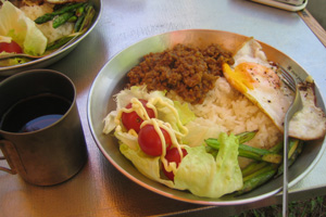 昼食は、ドライカレー。食べ終わるとkenjiは、再び椅子に座ったままこっくり。