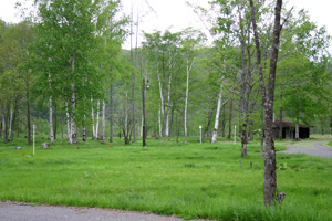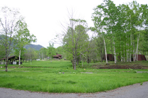 客は一組。がら〜んとしたキャンプ場は、まだ芝が刈られていない場所もあって、ワイルドな感じ。