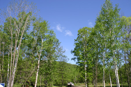 ニニウはたぶん・・・、そんな予想は好天のせいもあって、ずばり的中。家からキャンプ場には1時間半もかからずに到着。あ〜オープンしてくれてうれしいな。