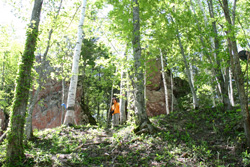 赤岩はロッククライミングの場所としても有名なようで、この時もこの絶壁にチャレンジしているクライマーがいた。