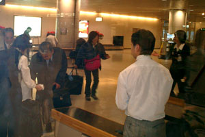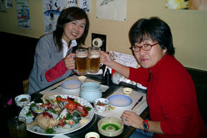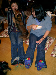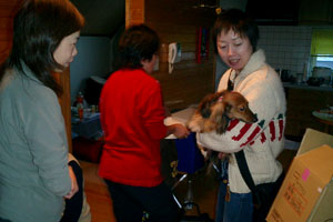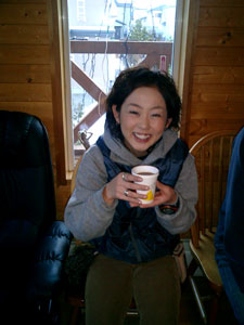 mo-chanママさん到着 朝から暖かくて天気予報は雨。午前中はなんとか降らずにすんでいたので、姫は最後の買出しに自転車で近所のスーパーマーケットへ。買う品物を呪文のように唱えながら入り口まですいすい〜っと行った・・・が、そこは氷だった。すって〜んと滑って自転車は前方へ。私の頭の中は「足怪我したら走れない!それはまずい!腕を突いたら骨が・・突き指もいやだ・・!午後から仕事だし・・・!やばい!」。気がついたら顔で転んでいた。お陰で上唇と鼻の下がすき傷状態で腫れている。あれ〜、なんてことだ!メガネも割れた。 でも気を取り直して仕事に出かけ皆には同情よりも笑いをさそってしまう。まっ、キャラクター的にはそんなものさ。 仕事が終わって急いで家に帰り、千歳空港へ。途中のバスとJRの中でも特に顔を隠すことなく上を向いていた。仕事を終えたkenjiと合流するなり笑われる。どうやら近くに寄りたくないらしい。 千歳空港では、いまかいまかとママさんの到着を待ち、いよいよご対面。 「すみません。こんな顔で・・・。」