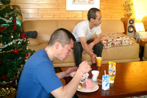 歓迎の晩餐会で北海道の味を味わってもらう。私たちもお客様がこないと食べられないご馳走に舌鼓。