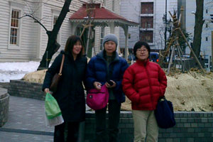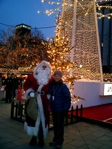 時計台の前で記念写真(左)てるてるさん クリスマス市をひやかす毛糸帽子&ダウンの二人 イルミネーションをバックにkenjiとカトチャンペッの姫 サンタとmo-chanママさん