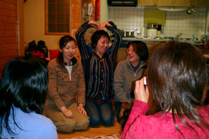 同じ年齢なのに全然違う反応の3人(kao、ともっち、yossy) 食べ続けるアサ妻さん 姫さん痛くないの?う〜んちょっと痛いかも mo-chanママさん&ともっちさんを呆然と見つめる姫 この日がお誕生日のchicchiさん 何を楽しそうに撮ってるの?mo-chanママさん 夜中まで楽しい時は続き・・・。