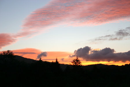 そして、峠に到着するとまさに日の出前。冷たい風が吹く中、こちらでも朝焼けを見物・・・。あと3分待っていれば朝日が昇るのが見られたのに〜残念!寒さのあまり早々に車に戻ってしまった。