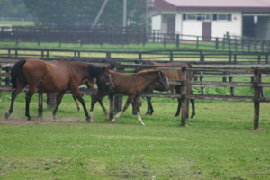 途中の道路はサラブレッドがたくさん。お馬さんを眺めながらのドライブであっという間に静内へ。