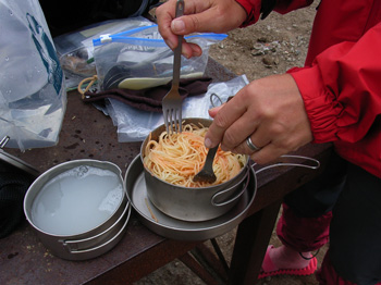 まずは腹ごなし。こんな風にいちいちテントに戻って食事をしてる人なんかいないけど、そんなスタイルもあっていいでしょう。なにせアルファ米は食べないんだから(笑)