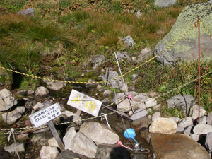 数週間前に赤ビートル夫妻がここを訪れた時の水場は、もっと水が豊富でそうめんを洗う事ができるくらいだったそうだ。