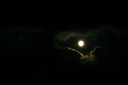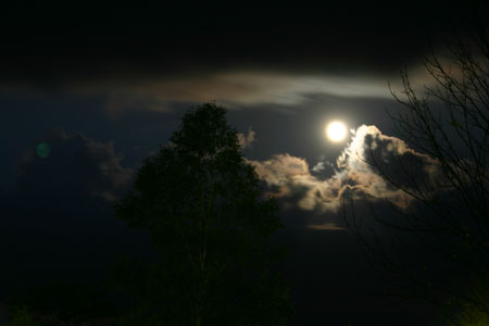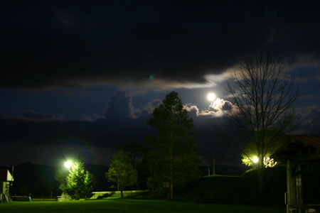 私は食事の準備、kenjiが明かりの準備をやっていると・・・。雲間から月が・・・・。 14番目の月が出てきた。