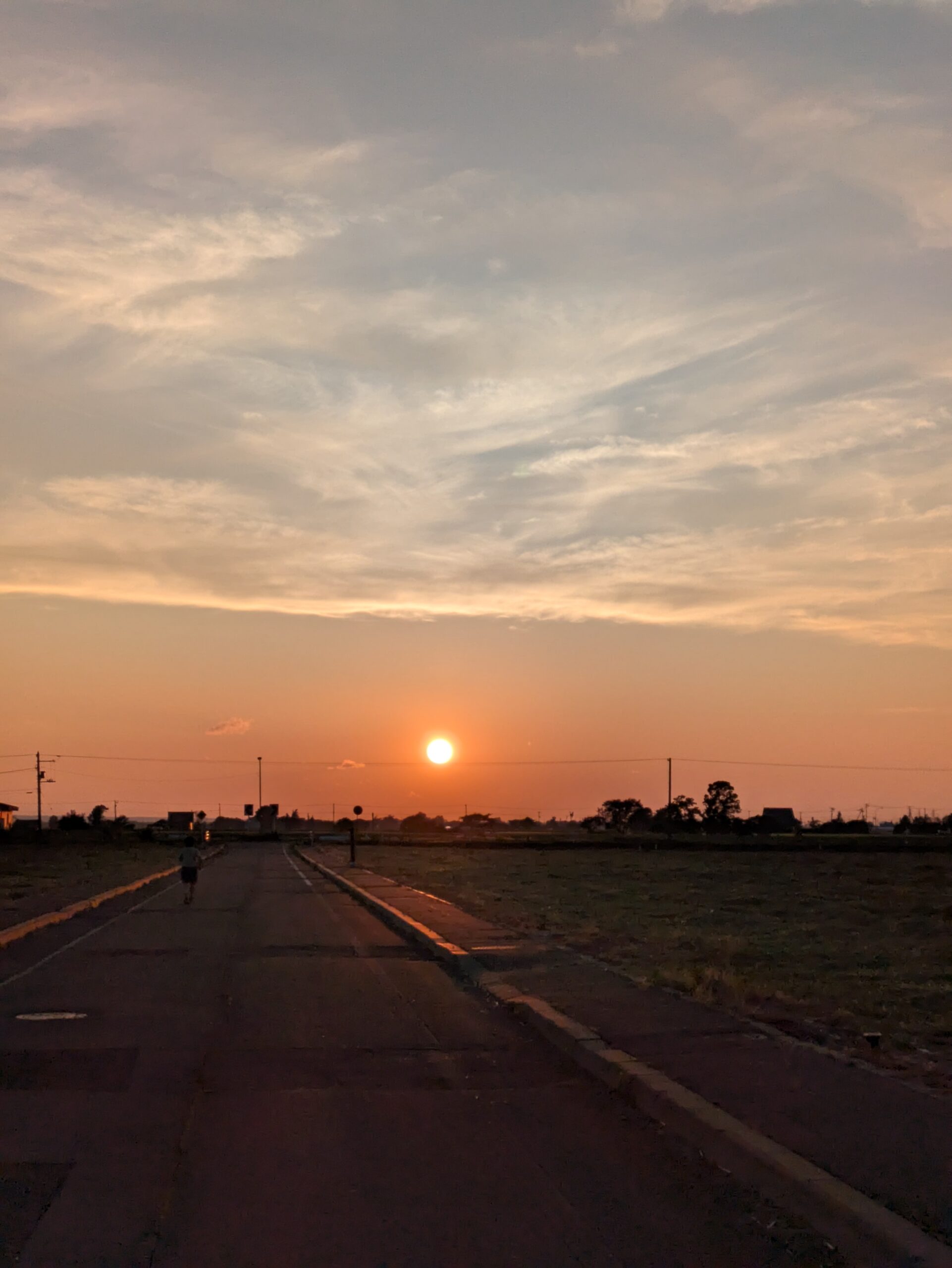 病気への対応の運動と食事、ウォーキング中の綺麗な田園風景。